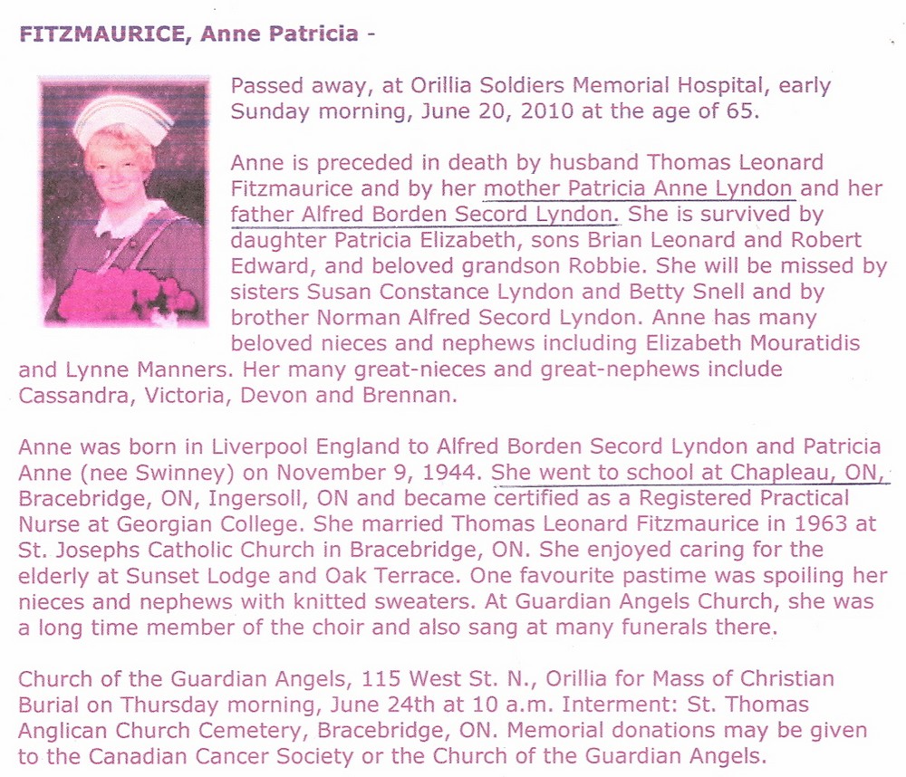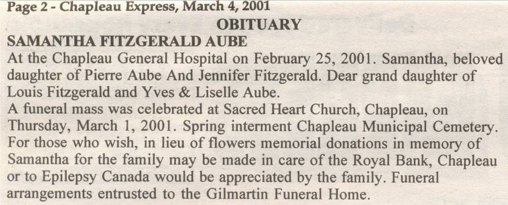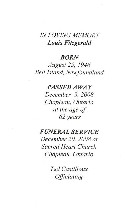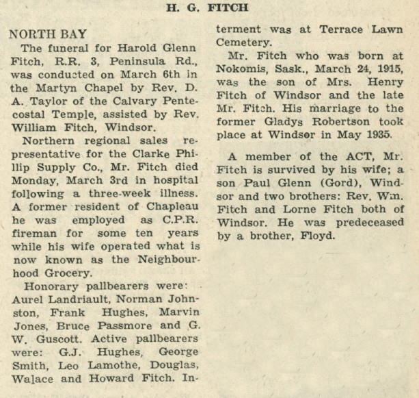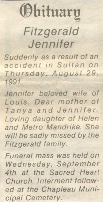 These Obituaries were compiled for the Chapleau Public Library