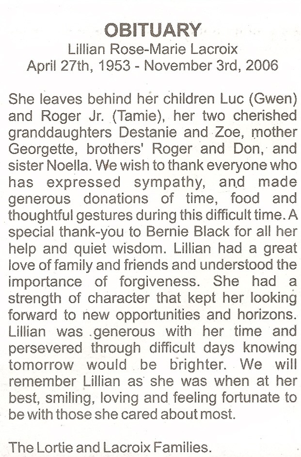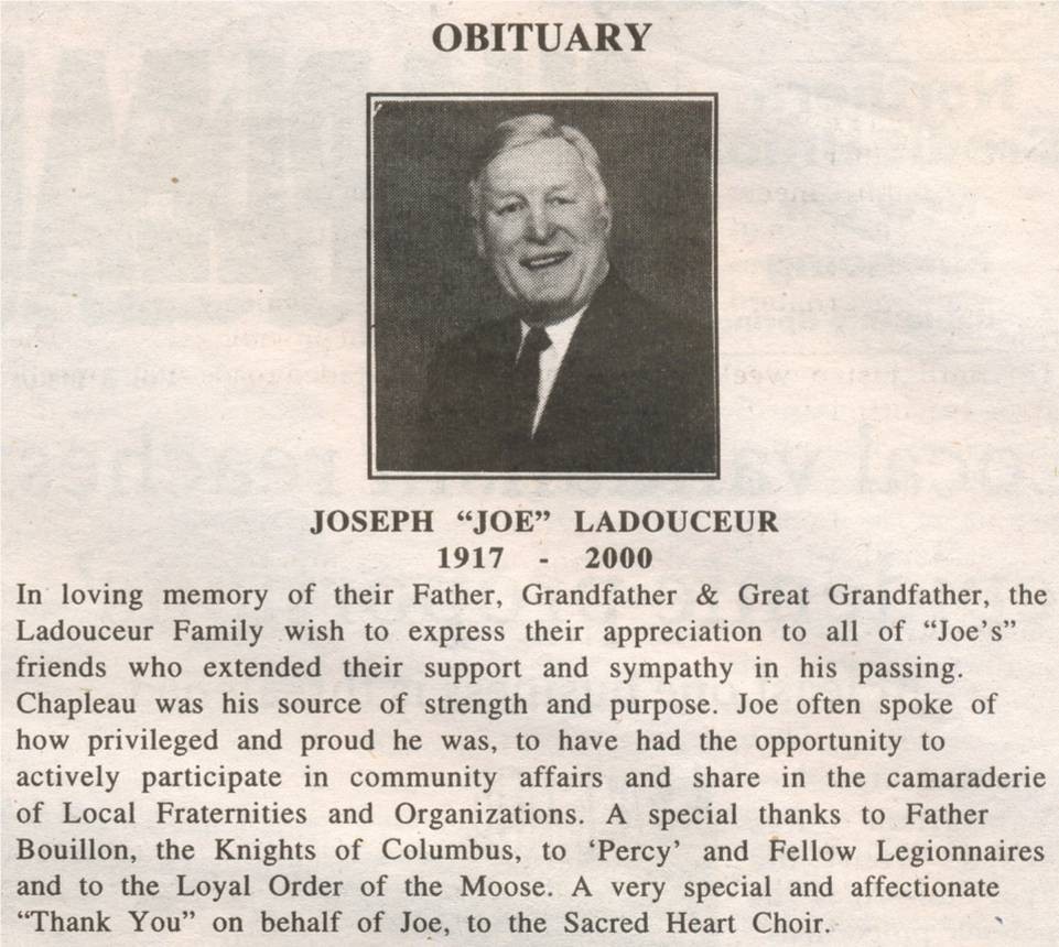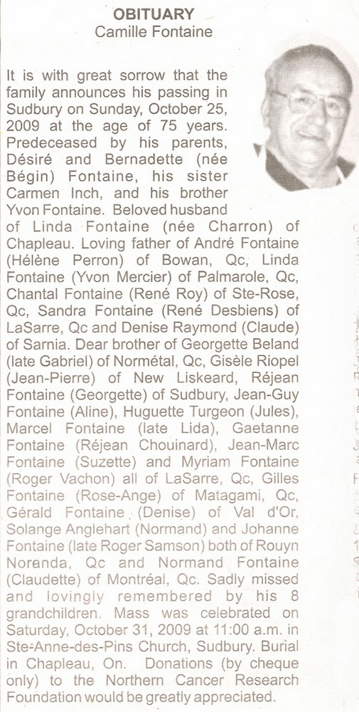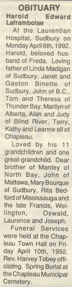 These Obituaries were compiled for the Chapleau Public Library