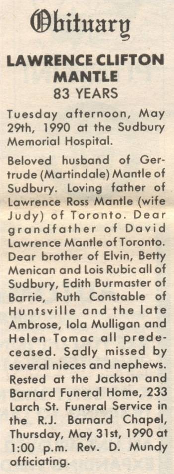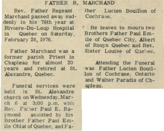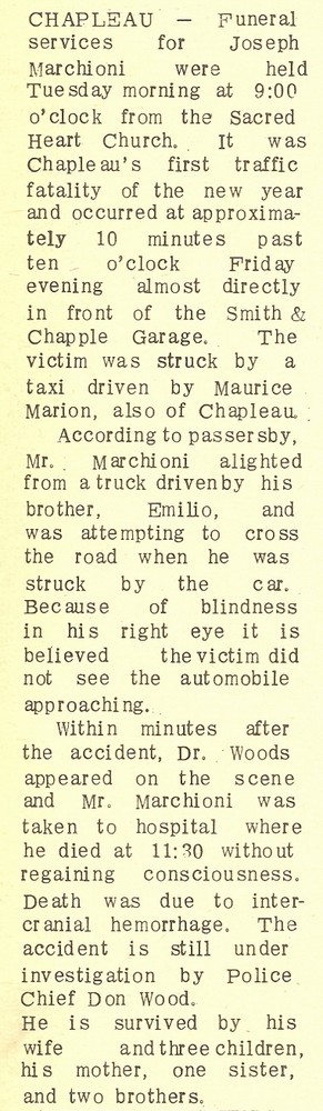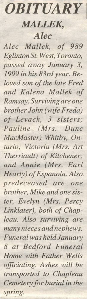 These Obituaries were compiled for the Chapleau Public Library