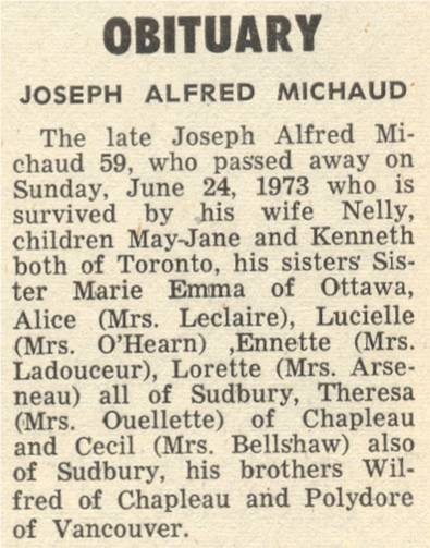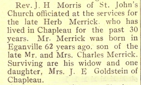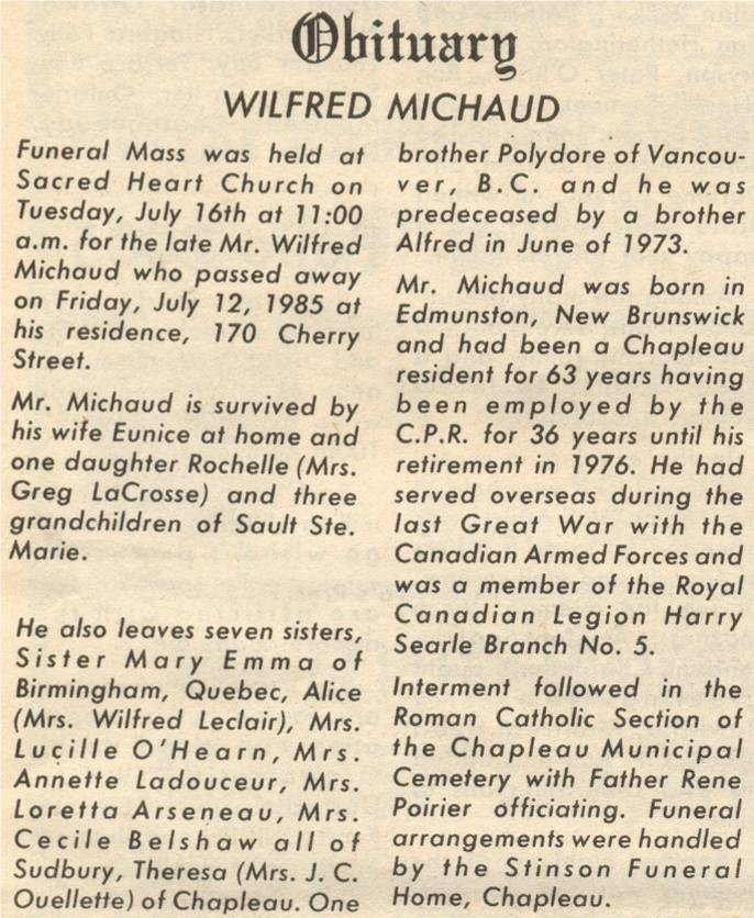 These Obituaries were compiled for the Chapleau Public Library
