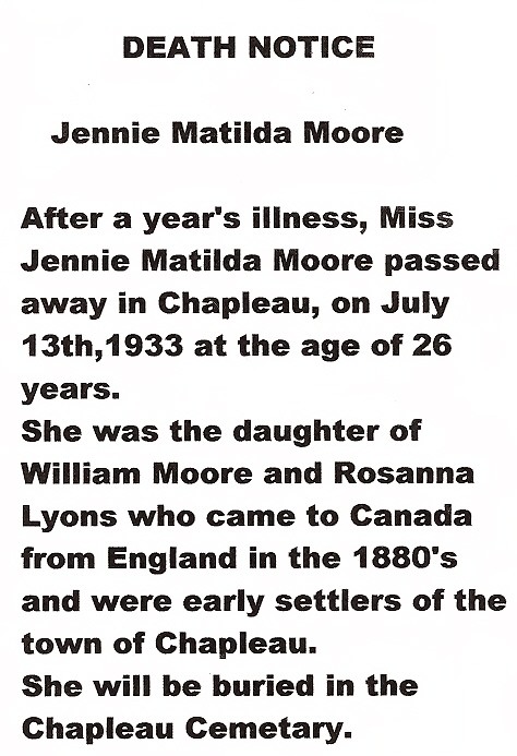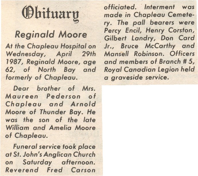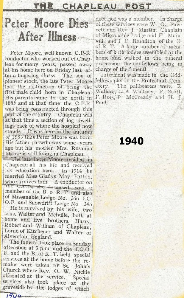 These Obituaries were compiled for the Chapleau Public Library