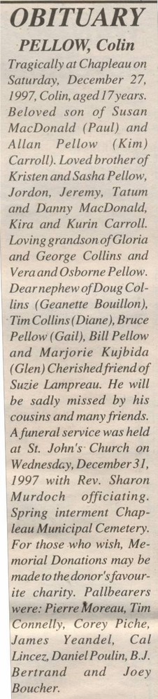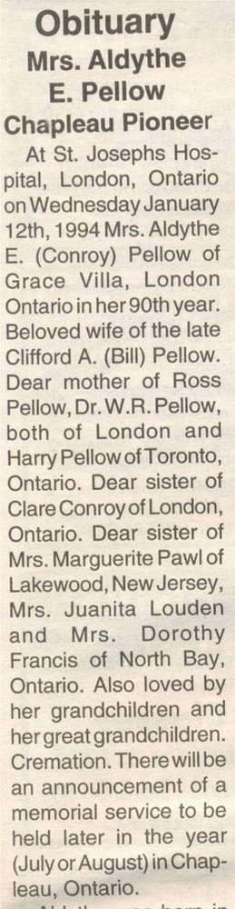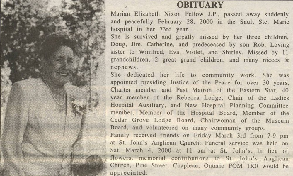These Obituaries were compiled for the Chapleau Public Library