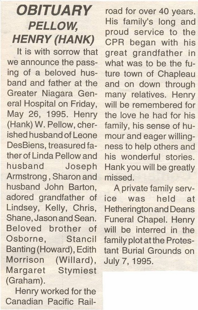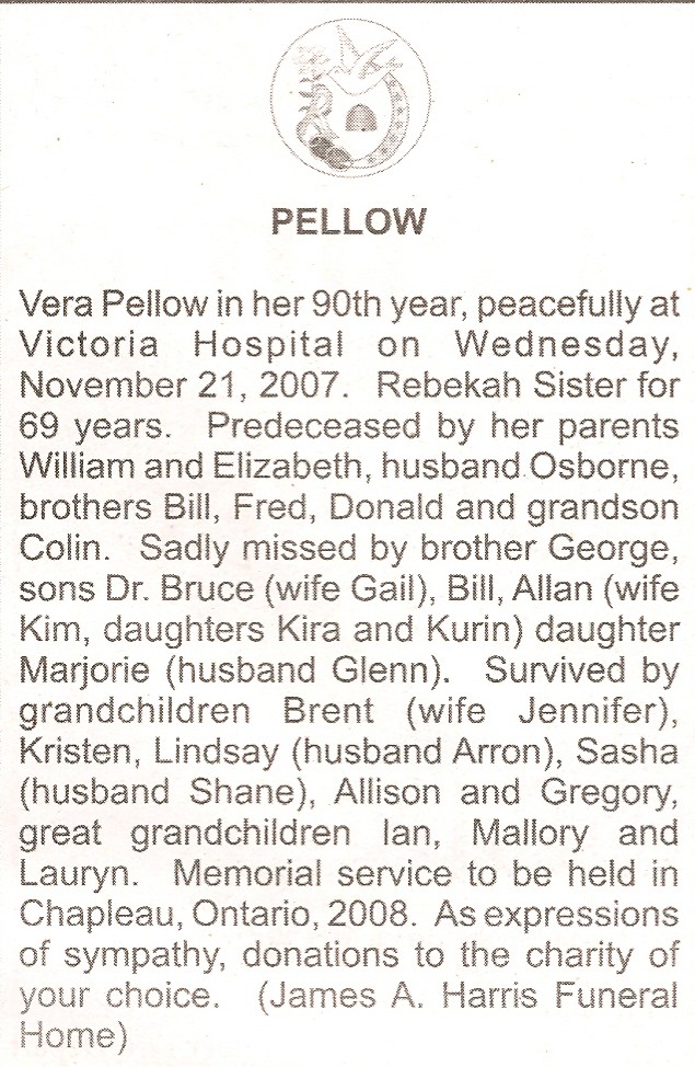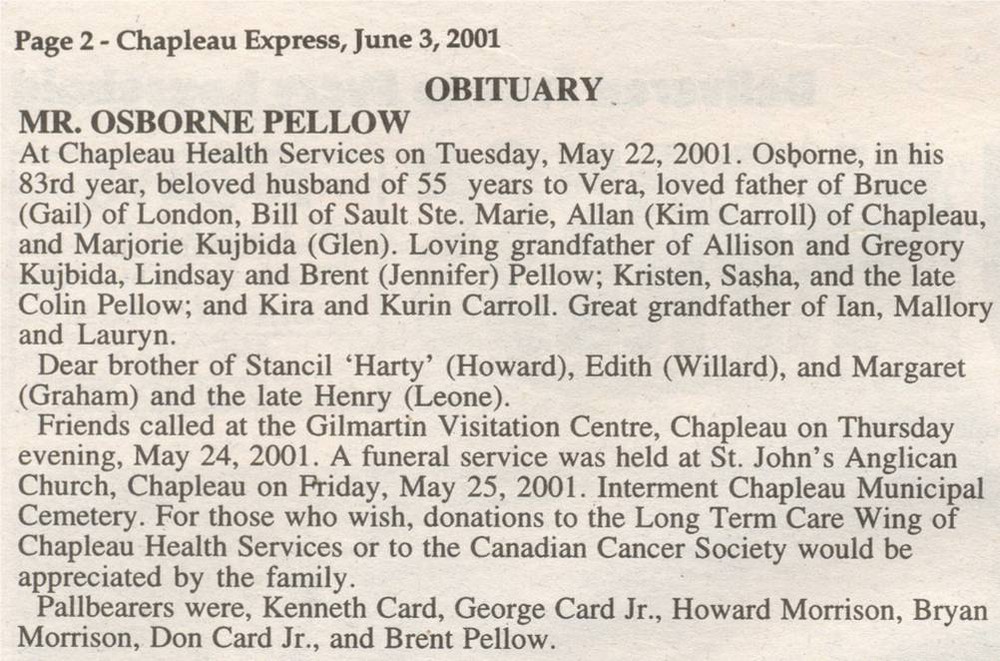 These Obituaries were compiled for the Chapleau Public Library